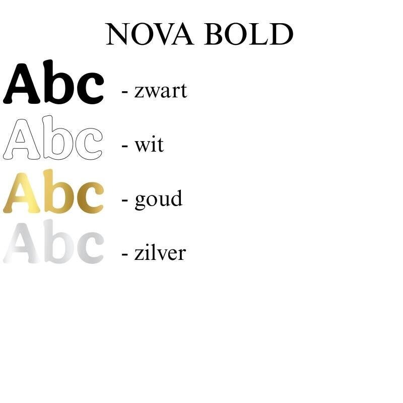 let op: de kleuren van de tekst zijn alleen beschikbaar in de kleuren die bij het lettertype staat! rood en nova bold kan dus NIET, maar rood in luckiest guy wel!